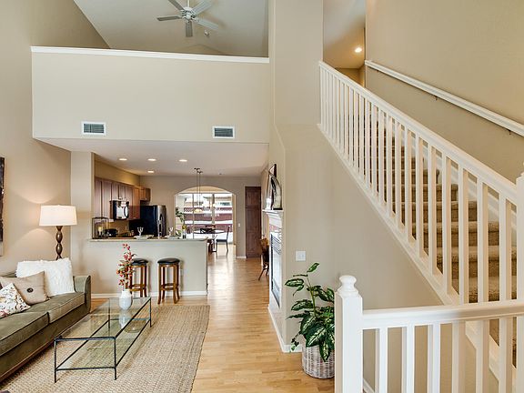 Best Location for Views in the Community!! Welcome to the Gated and Resort Style living of Palomino Park! This fantastic two story Townhome in the much sought after Gold Peak area of Palomino Park features a Main Floor Master Suite with 5 piece bath and walk in closet. Two Story Living Space facing the West for dramatic sunrise and sunset skies. New interior paint in many rooms. Main Floor Laundry complete with Appliances right off the garage/kitchen area. Hardwood Floors. Upgraded Honeycomb Hunter Douglas Blinds and the living room features remote control function. Kitchen with Upgraded Appliances, Convection Oven, Granite Counters. Kitchen Planning Desk. Enjoy Quick Snacks at the bar or kitchen island. Adjoining Eating Space/Dining just off the kitchen and great access to your private patio with Gas Line for BBQ. Additional 1/2 bath on main. Upper level features Open Loft Space, Study, two beds and full bath. Excellent Condition. Incredible Amenities at Palomino Park!!