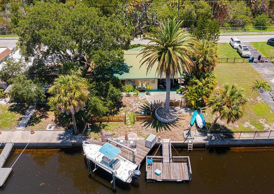 Waterfront living with a lift, davit and floating dock for your toys to call home. This well-maintained low maintenance house on a canal would make a great primary home, vacation home or rental property. It sits on a quiet dead end street in close proximity to five local beaches and the lively night life of Gil Dawgs, Hooters, Whiskey Joes etc. This house is also a fun place to entertain your friends with an outside bar, fenced in back yard for pets, fun landscaping and outdoor lighting. The bathrooms are both updated, the laminate floors, screens and floor in the Florida room and many more items have been updated by the owners. This place is move in ready and waiting for new owners to enjoy all it has to offer.