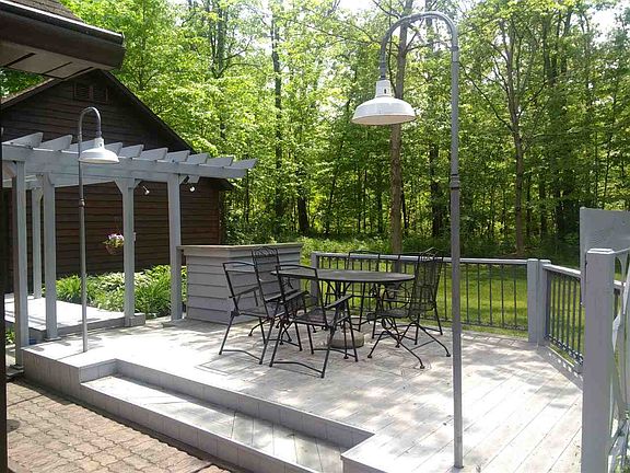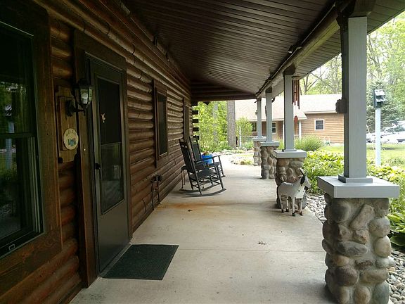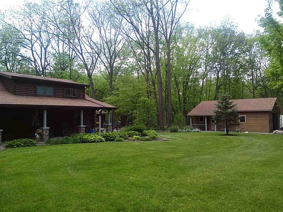 Cozy Log Cabin Home on 3.3 acres with a country setting but close to Fort Wayne with easy access to schools, shopping and Hwy 469. 18' vaulted ceiling in open concept Great Room, dining room, kitchen, with a gas log fireplace with Pella Windows. The spacious master suite includes a sitting space, walk in closets, Jacuzzi tub and large ceramic walk in shower. There is a detached 24' X 24' cedar sided finished garage with a 16' insulated door and walkup stairs to decked attic; 8' X 8' garden shed with covered porch; 24' X 32' Amish built pole barn with cedar and steel siding, finished & heated work shop, drop down stairs to decked attic, finished activity room wired for Internet with WIFI enabled, wood burning stove, vinyl windows throughout. Large, stoned parking area suitable for RVs, boats, etc. Outside features include: deck, brick walkways, 8' X 8' brick patio space, large flag stone patio with fire pit, plenty of fire wood, concrete sidewalk to pole barn, nicely landscaped yard with trees and over 200 ft. of riverfront access. This home offers many upgrades over the past several years and has been well maintained. 1996 - roof on back of house 2003 - roof on front of house (replaced during addition of dormer) 2003 - dormer addition (bedroom, bathroom, closets) $44,000 remodel 2004 - aluminum fascia and soffit installed on house and front porch 2006 - well pump replaced 2008 - 24' X 32' Pole Barn, Amish construction 2008 - Gutter toppers installed, house and front garage 2009 - new Pella windows installed, house and porch 2012 - hot water recirculation pump replaced 2012 - roof replaced on front garage 2012 - Peak Interrupter timer replaced {water heater and electric heat cycled off during off-peak use to conserve electricity) 2013 - updated loft flooring bamboo 2014 - replaced pressure tank 2014 - replaced water heater (50 gal.) Water softener: is 6 yrs. old, plus the home has a triple filter drinking water purification system in the kitchen. 2 Window AC's stay.