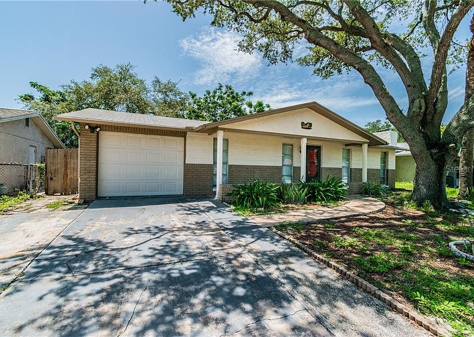 Great location near shopping and restaurants, US 19 and Mall. Spacious 3 bedroom, one bath, concrete block house in lovely Ridge Crest Gardens. The house also features a large 1 car garage and fenced back yard. Kitchen has granite counters, solid wood cabinets and brand new appliances. All measurements are approximate, buyer to verify. Great investor opportunity or customization opportunity to a primary resident. This home has great potential with some updating, some curb appeal you can this home into home sweet home. Don't miss this opportunity!!