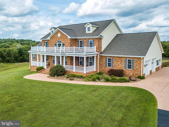 This stately Georgian Colonial on 10 acres boasts quality features and spacious living. The welcoming brick front porch overlooks picturesque acreage and a neighboring pond. Enter into the impressive foyer with its grand staircase and 20-foot ceiling. Main level living is enhanced with formal living and dining rooms, an open family room with pellet stove, private office, generous master suite with a spa bath. The gourmet kitchen is fully equipped with gas cooktop stove, double ovens, walk-in pantry, breakfast nook, and a laundry/mud room. The upper level overlooks the foyer and offers four bedrooms with Jack and Jill baths. The lower level has a full bath and an expansive unfinished area for a future recreation room, game room, exercise room and more. Quality amenities include over 5,000 square feet of finished living space 2X6 construction, 50 Year Architectural shingles, hardwood flooring, tile in kitchen, bath and laundry, recessed lighting throughout the house, extensive trim, central vacuum, walk-in closets,17KW generator,Home alarm system, lightning rod protection, Interior solid doors, 2 water heaters totally 125 gallons with circulating pump throughout entire 1st floor(INSTANT HOT WATER), water treatment system, five bedrooms total, and four and a half baths. The backyard is fenced and has a perfect patio for entertaining or relaxing. For the hobbyist or home business, this property offers an attached oversize two-car garage plus a detached six-car garage. both fully insulated. The detached garage includes a lift and a bath, and extra parking for RV vehicles. This is truly a custom one-of-a-kind home!