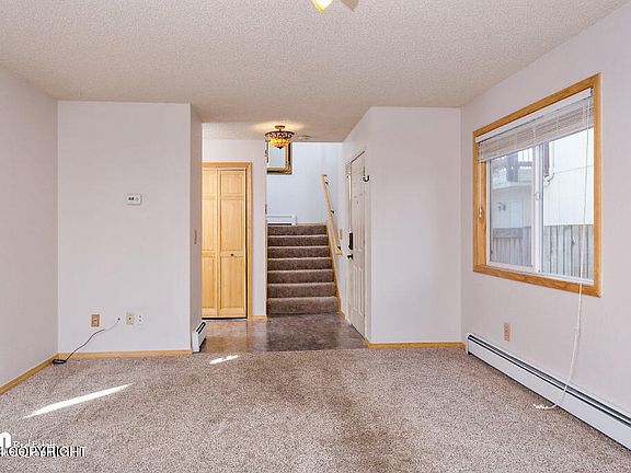 Don't miss this great affordable home near Dimond High School, parks, trails and not far from shopping, restaurants and entertainment! Ample space throughout, primary bedroom offers walk-in closet. Private fenced backyard perfect for those with dogs or BBQing with friends. Low monthly HOA dues cover water, ground maintenance, snow plowing and common fences.
