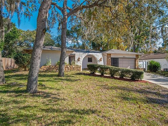 Immaculate MOVE IN READY! Large 2 bedroom, 2 bath, 2 car garage remodeled pool home with great open floor plan! Home sits on a cul-de-sac & exceptional large private lot, pool features screened in cage with large sitting area perfect for gatherings outside, all pool equipment updated in 2019 and has child safety fence. Entire home was updated in 2019, including bathrooms with new toilets, vanities, shower fixtures, lighting, fresh paint inside and out. Huge kitchen with new cabinetry and beautiful granite countertops with mosaic backsplash feature large pantry, eat in dinette area, stainless steel appliance package, island and pass-through window to outside pool deck. Formal dining room has sliders give you great view of pool and is open to extra sitting area/living room. Family room features built in bar great for parties and is open to kitchen. Split floor plan with bedrooms and baths on opposite sides. New flooring throughout with plush carpet in bedrooms, nice pecan oak laminate flooring in living spaces and tile in all wet areas. Master bedroom boasts his & hers closets, ensuite features his & hers sinks with beautifully tiled river rock shower floor and new glass shower doors. Large indoor laundry space with mop sink. 2 car garage with screens and automatic opener. Roof and A/C were replaced in 2019. Hurry a pool home that is turn key will not last long. Close to all, shopping, restaurants, golf courses, conveniently located close to US 19 short commute to Tarpon Springs & beaches. Hurry a pool home this upgraded will not last long! CALL FOR A TOUR.