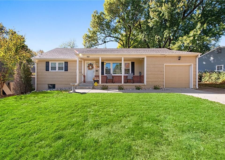 This is a really cute Ranch in a conveniently located neighborhood close to Ward Parkway shopping center and moments from I-435! New roof in 2021, HVAC system in 2019, new walkway, patio and privacy fence in 2017. Lucky you! Updated kitchen, finished lower level for extra play space, tv and entertainment area! The extra porch area transitions to the patio and generously sized fenced backyard with fire pit and space to play. The driveway has an extra parking pad for your convenience. This is a perfect starter home or investment property! Cute front porch to enjoy your coffee and sunrise mornings. It is waiting for you to take a look, fall in love and move right in!