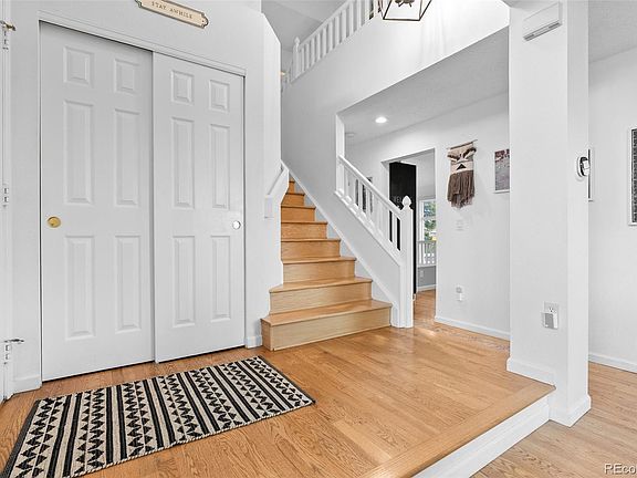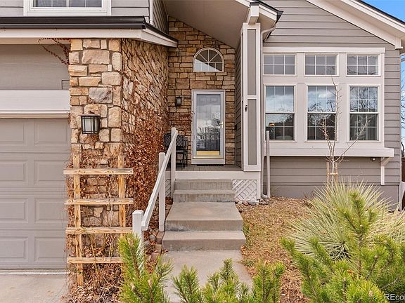 Tucked away at the end of a peaceful cul-de-sac in Highlands Ranch, this stunning home offers exceptional outdoor living with multiple balconies, a spacious terrace, and a walk-out basement. The beautiful kitchen features sleek white cabinetry, granite tile countertops, a center island, and stainless steel appliances, with charming French doors leading to the deck. The bright and open family room boasts a vaulted ceiling, a cozy fireplace, and custom window coverings. Hardwood floors flow throughout the upper levels, including the elegant dining room with an updated light fixture and deck access. Upstairs, the expansive primary suite offers a private balcony with city views and a five-piece bath. Two additional bedrooms and a full bath complete the upper level. The finished walk-out basement provides a versatile open living area, a full bath, and a laundry room with ample storage. Experience the ultimate outdoor living with an outdoor speaker system integrated throughout the backyard. Whether hosting a summer barbecue or enjoying a quiet evening under the stars, the sound system envelops you in high-quality audio, making every moment memorable. Rest easy with the Ring Security System installed for your peace of mind. Featuring smart doorbell cameras, motion sensors, and floodlight cams, this home offers comprehensive surveillance to keep your sanctuary secure. Monitor your property from anywhere with real-time notifications, ensuring you're always in the know. This home has been pre-inspected, includes a new roof and so much more. It truly is a must-see!