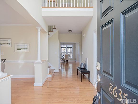 Southern Style Apex Beauty WITH Privacy! Unfinished basement home on a gorgeous wooded lot w serene decorative pond & stream in back to day dream the day away. Bird watch from your oversized screen porch, deck or patio! Plenty of outdoor living space here. Has everything you need w office (or 1st floor guest) down, dining, Gourmet Kitchen OPEN to Family w built ins, Hardwoods UP & Down (except secondary bedrooms), 4 bedrooms up plus bonus, 1300 UNFIN basement space that is plumbed & 3 Car Tandem Garage.