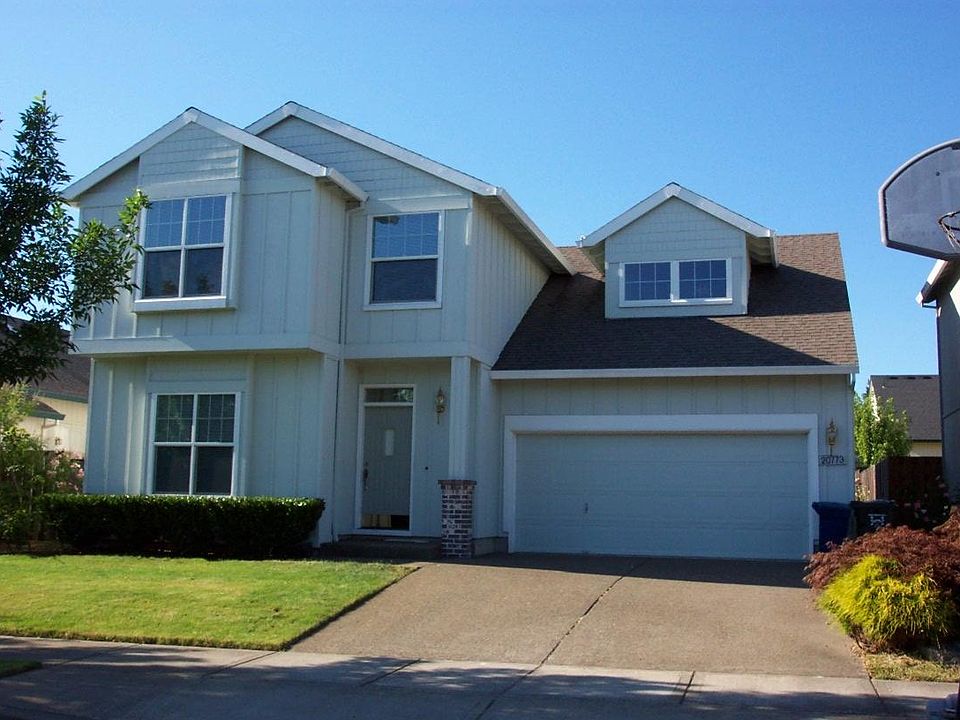 Gorgeous approx. 2000 sqft single family house with 4-bed, 2 1/2 bath, two-level, two-car garage, located in a quite, safe and convenient neighborhood, walking distance to Quatama Max station, close to Tanasbourne Mall shopping center, and surrounding parks and trails. Close to Intel, Nike. Excellent school district. Hardwood entry leading to a spacious high ceiling living room and formal dining room. Kitchen with tile island counter. AC, KitchenAid refrigerator, electric range, oven, dishwasher, and garbage disposer. Informal eating nook off of kitchen leading to a slider patio door and a fenced large well-maintained backyard. Family room off of kitchen with gas fireplace. Upper level has a master suite with double vanity, shower and walk-in closet. A big size of bonus room features the specialty of this gorgeous house, which can be used as bedroom, office or entertainment space. Landlord hires a landscaper for lawn maintenance.