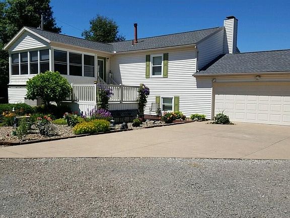 This immaculate home features four bedrooms and two full baths. The cozy L shaped living room has a gas fireplace and is next to a large master bedroom with a walk in closet. You'll never want to leave the three season Florida porch that looks over the property and the maintenance free deck. There are two extra 24 x 24 garages for a total of six cars for you car buffs. You won't ever be in the dark with the 7,500 watt home generator. This home has an alarm system and the sellers have provided a home warranty. Horses permitted. Call for your private showing.