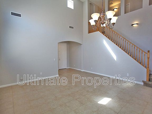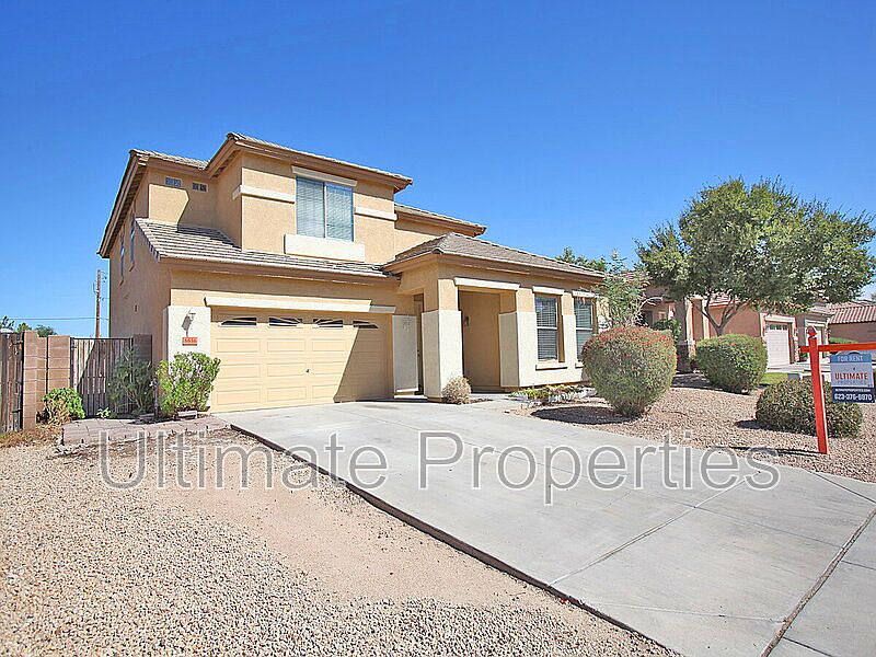 Large 4 Bedroom + 3 Bathroom + Den home in Peoria. Huge living room features tall ceilings. Kitchen features an island, desk, lots of cabinet space, range/oven, dishwasher, fridge, and microwave. Sliding glass door to backyard. Master suite features dual sinks, separate tub and shower, and walk-in closet. Backyard has a covered patio and easy to maintain landscaping. 3 Car garage