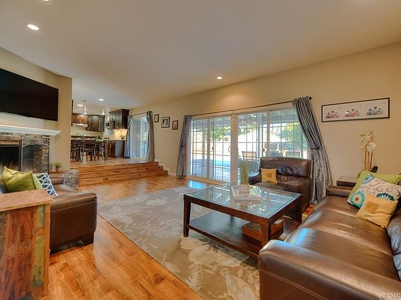 Recently Remodeled and Gorgeous! This Northridge Gem Is Located On Over 13,000 sqft of Flat Land. With An Extra Structure In The Yard- Ideal For A Gym, Office or Possible Guest Suite -This One Has It All! Iron Gates Open To A Lush Landscaped Spacious Front Yard With Green Grass and Fruit Trees Which Surround This Turn-Key Home. Entering Into The Foyer, Your Guests Feel The Light, Bright, Open Floor Plan. The Chef's Kitchen Is Newly Remodeled With Stainless Steel Appliances, New Cabinetry, And Granite Counter Tops, All Overlooking The Family Room Complete With Fresh Paint, Newer Windows, A Stone Fireplace, Earth Tone Floors, Recessed Lights And A Feeling Of Tranquility. Each Of The 4 Bedrooms and 2 Baths In The Main House are Modern And Updated, Continuing The Fresh Flow Throughout. The Detached Guest Suite In The Back Is Also Nicely Done With A Living Area, Bedroom, Kitchen And Bath. The Total Square Footage Includes The Detached Guest Suite. The Sprawling Yard Features A Fire Pit, Seating Area, Patio, RV Access, Large Lawn, Even More Fruit Trees and A Sport Court Area Perfect For Entertaining. Don't Miss This One!!!