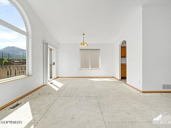 Charming two story reverse with vaulted ceiling and unobstructed mountain views. Upstairs family room with gas fireplace nestled in corner for those rainy cool Alaskan nights. Roomy kitchen, loads of countertops, large pantry and gas range. Oversized upstairs bedroom with private deck and huge walk in closet. Downstairs family room opens to backyard. Two more bedrooms, bathroom and laundry space.Backyard space perfect for firepit and endless acres of natural vegation that leads to Chester Creek. RV parking.