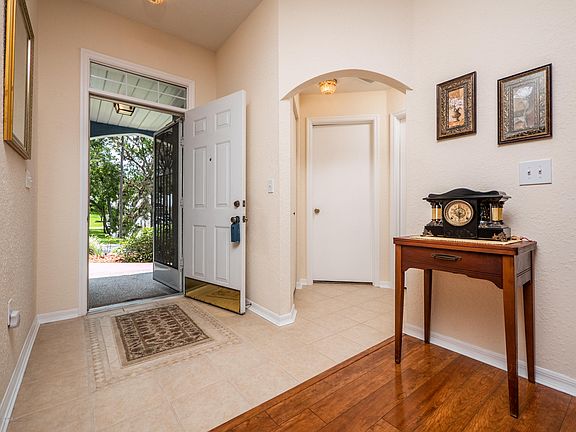 This stunning home within the 55+ community of Oak Run is move-in ready and won't last long! Azure Oak offers a spacious 2-bedroom, 2-bath home that includes tall ceilings, ample natural light, and high-end wood floors, tile, and carpet. The kitchen comes fully equipped with all appliances, plenty of cabinet space, and additional pantry. Unwind in the Florida Room that overlooks the backyard. Fully landscaped and accented by fruit trees, Azure Oak also includes a two-car garage. HOA includes access to all amenities which include pools, fitness center, and tennis courts. Beautiful golf course and restaurant available. This property is conveniently close to shopping, dining, and event options right in Ocala, as well as several medical facilities.