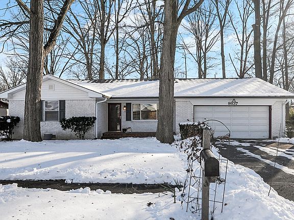 Welcome to this charming all-brick ranch home, conveniently located with easy access to I-70! This lovely home features 3 bedrooms and 2 full bathrooms, all adorned with beautiful hardwood floors throughout. The covered front porch welcomes you as you step inside to discover a spacious layout that includes a large Great Room and cozy Family Room, complete with wood burning fireplace, skylight, and sliding door to the back patio area-perfect for relaxing or entertaining. The spacious open kitchen boasts an abundance of cabinet and counter space, along with a breakfast bar area, making it a chef's delight. Adjacent to the kitchen, you'll find a dining area with floor to ceiling window overlooking the backyard. Outside, enjoy the fully fenced backyard, which features mature trees and a storage shed providing ample space for outdoor activities. The oversized 2-car attached garage is perfect for for hobbyist. Situated on a quiet cul-de-sac street, this home offers a peaceful retreat while still being close to all the amenities you need. Updates include Foundation Repair by Michaelis 2024, New Roof & Gutter Guards 2020, New Air Conditioning 2024, New Sewer Line 2023, this home is ready for you to move in and make it your own!