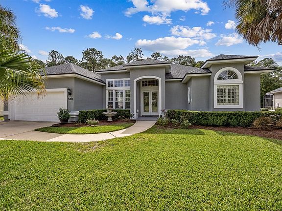 Move-In Ready Home in the Prestigious North Hampton Golf Community! Welcome to a residence where timeless elegance meets modern comfort with NEW ROOF 2023, NEW hot water heater 2024, NEW luxury vinyl plank flooring throughout (no carpet), NEW stunning guest bathroom, NEW fixtures & custom closets. The home includes a 1 year home warranty with a split floor plan & many sought-after upgrades! Thoughtfully designed for both relaxed living & entertaining with family & friends with soaring ceilings, a formal living & dining room & a bright window-filled breakfast nook that warms the interior with natural light. The gourmet kitchen features a large center island, NEW stainless steel appliances, granite countertops, custom lighting, overlooking the family room, accentuated by CUSTOM SHIPLAP walls and an electric linear fireplace, creating a gathering space ready for guests. Step through the sliding glass doors to the oversized screened lanai, also accessible from the large owner's suite, which spans the entire rear of the home—an inviting retreat for your morning coffee or evening gatherings while admiring true privacy, an organic garden & lush landscaping that encompasses over a quarter-acre, offering tons of space to add a private pool or create your own backyard oasis. Residents of North Hampton enjoy access to the BEST OF THE BEST- resort style amenities, NO CDD & low HOA, Olympic-size pool, tennis & pickleball courts, basketball courts, soccer fields, a playground & the exclusive Lofton Creek for fishing & kayaking at the serene outpost. The community offers boat & RV storage, cable/wifi, home security monitoring & the full-service golf club is open to all for dining & socializing. Book today!