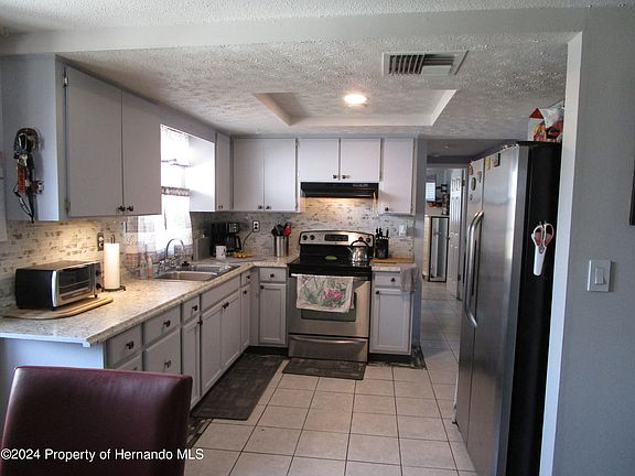Come check out this move in ready home! Are you looking for an affordable first time home or maybe a vacation home? This home has had all the major items replaced within the last five years: Roof, CHA, Water heater. Spacious living room that opens up to the dining area, cute kitchen with light colored cabinets, SS stove and refrigerator. Hall bath has newer vanity, tub/shower combo with designer tile. Primary bedroom is a good size with a ceiling fan and large closet. Second bedroom has a ceiling fan and closet. The garage was converted, there is a room/ office with AC duct, and a utility area with the washer/dryer. The backyard is oversized for the area and fully fenced.
