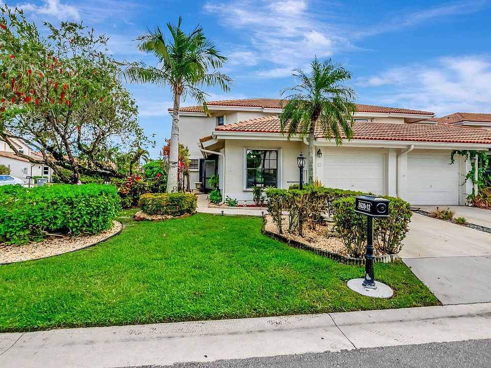 Corner unit on the LAKE in this quite GATED community! Stunning 3 bedroom, 2 1/2 bath recently remodeled kitchen w/white granite countertops, white cabinets, new SS appliances. High quality Vinyl flooring throughout. Newly remodeled master bath with new whirlpool tub, separate shower, new tile walls, new mosaic tile on bathroom floors. Entire unit freshly painted. Master en-suite on 1st floor. Full size washer & dryer. Accordion hurricane shutters on windows. Spacious tiled screened patio & Master bedroom overlook lovely tranquil lake. Heated Pool, tennis, basketball, play area. Lawn care, cable & internet included. Association approval required. No pets. Prime location near Town Center Mall, major highways, restaurants, hospitals, etc.