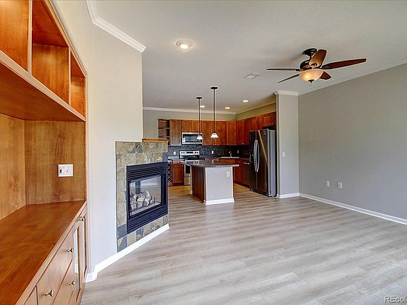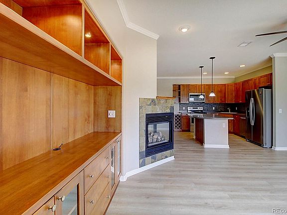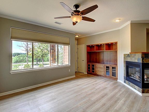 GORGEOUS 2 Bedroom, 2 Bathroom Gold Peak condo with stunning views of the Mountain Range and Links Gold Course from every window! Amazing natural light throughout the open floor plan! Living Room has big picture window with built-in entertainment center with soft-close drawers, and cozy dual-sided gas fireplace shared with Kitchen and Dining Room. Kitchen features solid surface countertops with decorative tile back splash, maple cabinets, stainless-steel appliances, and center island with additional seating x3. Appliances and flooring are less than a year old! Relax on the big covered front porch, while you enjoy sunsets, mountain beauty, and fireworks on 4th of July! Attached tandem garage with great storage! Enjoy access to numerous Pools, Parks, and Gold Peak Cabana with bbq! Hunter Douglas shades and fans throughout!