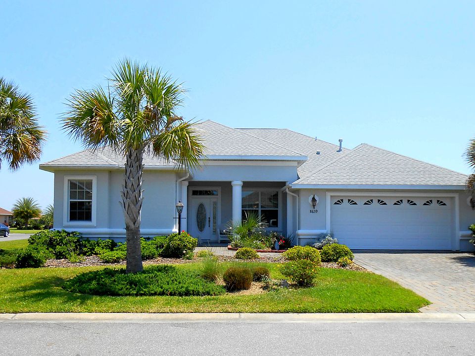 This large corner lot Sterling model home features 3 bedrooms, plus Library/Office, Grand Room, 2-car Garage, offers almost 2,300 sq. ft. of living space, and is located in the much sought after gated 55+ community of Candler Hills. Upon entry you will note the Formal Dining Room to your right and Formal Living Room forward which features a tray ceiling and a triple slider in the rear which leads to a screened Lanai under roof. To the left lies the Master Bedroom suite that has a sitting area with French doors that open to the Lanai, two large walk-in closets, and a spacious Master Bath boasting a huge tiled walk-in shower. The Kitchen overlooks the spacious Grand Room and Cafe area. A seamless window in the Cafe area overlooks the Lanai. A Library/Office is located just off the Grand Room and two additional bedrooms are down a quiet hall. The home features neutral colors throughout, 9'4" ceilings, Front Porch and Lanai have non-slip decorative surface, 1-Year Home Warranty, and more!