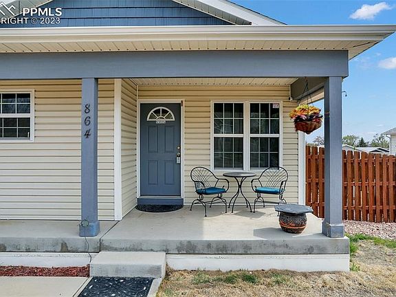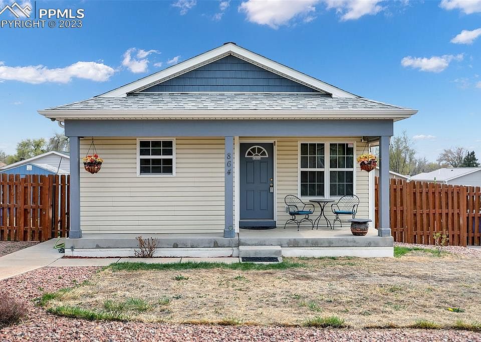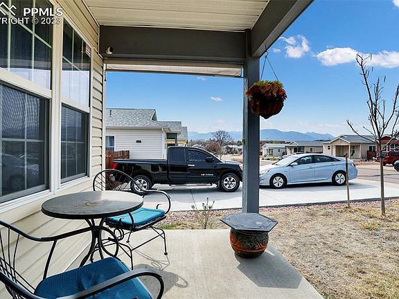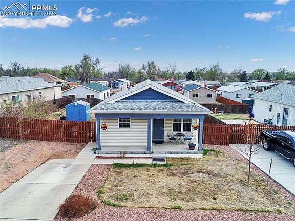Cute move-in ready ranch style home with covered front porch. Enjoy the unobstructive view of Pikes Peak- perfect for watching fireworks on New Years & Independence Day. Walk in to a bright living room with plenty of space for even a sectional couch. Enjoy your eat-in kitchen with oak cabinets & lots of counter top space along with a gas stove. Bathroom has an additional storage closet. Laundry area has plenty of room for hanging up clothes with an exterior back door to a fully fenced back with shed. There is extra storage in the crawl space which is clean and incapsulated. There is a pretty catalpa tree in front yard. Neighborhood is close to walking trails, parks, shopping, schools, Ft. Carson and I25.
