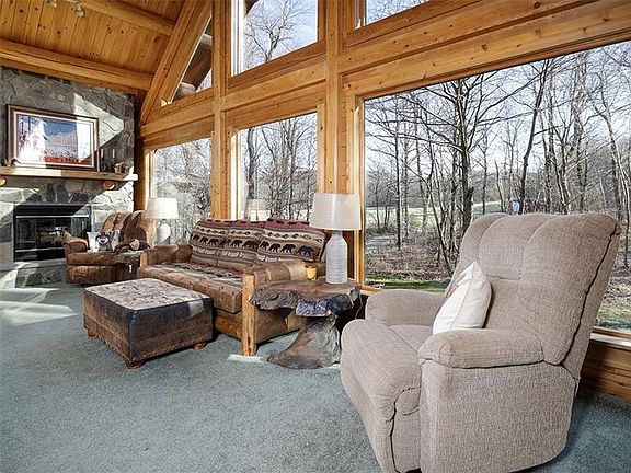 Are you looking for a log home with 4 bedrooms and easy access to the ski resorts, state parks, the snowmobile trails, and the Laurel Highlands Hiking Trail? Then this home is for you! This Rustic Log Home, built in 2005, sits on a township road adjacent to Fern Mountain, with a large open kitchen, dining and living room area. The master bedroom has not only a master bath, dressing area and large closet, but includes its own deck too! Two other bedrooms and a bath complete the main level of the home. The lower level is currently set up as a family room with fireplace and large bunk room, full bath, laundry, additional shower, and two car garage! Store all your toys in the large shed with attic storage! The deck off the back of the kitchen is great for outdoor dining and the firepit is another great place to gather and toast those marshmallows! Being sold fully furnished except for personal items!