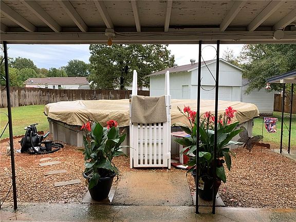 Move in ready home with tons of updates !! Back yard is a perfect place for a staycation !! Complete with covered patios , wooden swing set , above ground chlorine pool , a large work shop and a storage building ! Home boast new tile showers , new flooring , cute new rustic pantry door , wood burning stove for the cold nights , built ins in Bedroom and window space is perfect for a desk ! All new interior and exterior paint , walk through garage with access to the extra carport must see to appreciate !