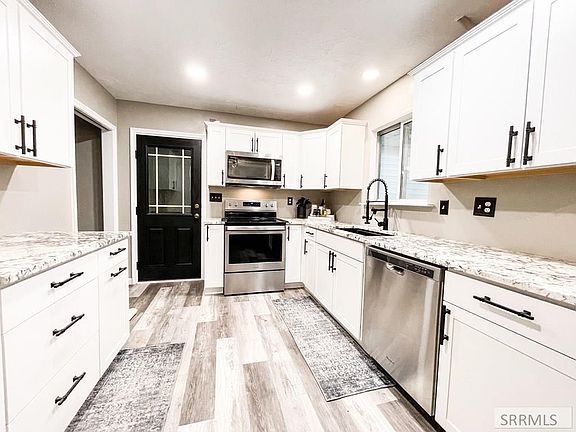 This fantastic home is located on the west side of Idaho Falls. The property consists of five bedrooms, three bathrooms, a recently upgraded kitchen with granite countertops, new kitchen cabinets, new flooring in the kitchen and downstairs bedroom, has a two-car attached garage, a concrete driveway and concrete RV pad, has a large master bedroom, and has both a living room and family room! The laundry is located in the basement and has ample storage available. Don't miss the basement food storage pantry! Don't miss this one, it has such an amazing value. Buyer to verify all info.
