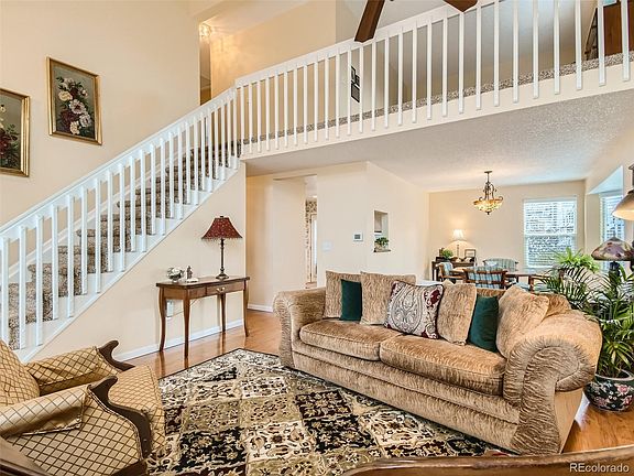 Gorgeous, 4-bedroom home in desirable Hunter's Glen community! This turn-key home is flooded with natural light and an open floor plan. Gleaming Hardwood flooring throughout the main level. The luxurious living room area offers vaulted ceilings and a cozy fireplace. Spacious formal dining room. The stunning kitchen features granite countertops, updated cabinets, and newer SS appliances. Convenient main level bedroom with full bath. Upstairs, you'll find a sprawling loft area, perfect for work out area, office space, you decide! 2 additional bedrooms and a full bath complete the upper level of this amazing home. The finished basement provides a family room, 3/4 bath and bedroom. Outside, enjoy the large fenced yard and gardening areas. Patio furniture included! New windows! Newer hail resistant roof! This spectacular home won't last! Perfect for the growing family! Great cul-de-sac location! Close to shopping, entertainment and dining!