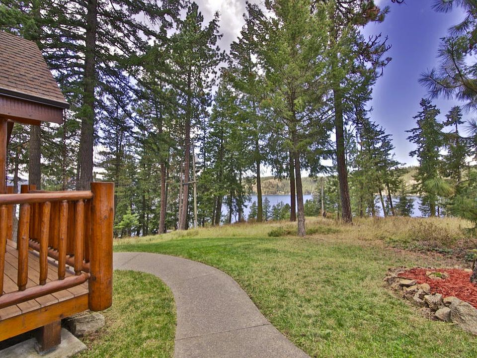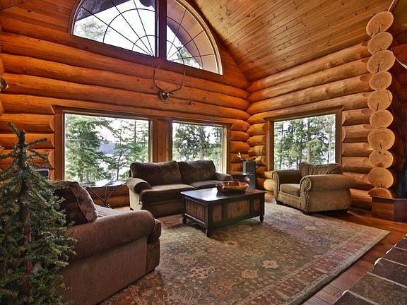 Custom Log Home with Lake CDA Views. Quality constructed. 3 Bedrooms + den, 2.5 BATH, 3,772 SF Log Home w/ finished daylight walk-out lower level, 2+ car att. gar Park-like” end of road privacy with lots of outdoor living, 4 living areas, formal dining, dramatic kitchen, spacious bedrooms and an incredible master suite!