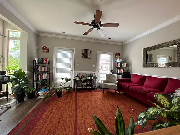 Congratulations on your match! This unit is available June 1, 2025 - This beautiful end unit built in 2005 in Harbor Edge of Albemarle Square in Jonestown. Each large bedroom has an attached bath/shower. One car attached garage with parking pad for one additional car. Home is wired with alarm system and has central air conditioning and heating. The kitchen has granite counter tops, beautiful tile flooring, stainless steel fridge/freezer, built in microwave, dishwasher, and garbage disposal. Bedrooms have ceiling fans and berber carpet. Living room also has a ceiling fan and two doors that open for plenty of fresh air and light. Full size washer/dryer in unit. Deck off of dining room and master bedroom. 1st Floor bathroom is attached to bedroom but also has a second door for guest use. 1st floor has bedroom/bath, laundry and garage. 2nd floor has master bedroom with walk in closet and attached bath, kitchen, dining and living room. Garbage pick-up, recycling pick up and snow removal is included in rent. Non-Smokers only, no pets allowed, min credit score of 700, and no application fee. Non Smokers & No Pets. Owner pays HOA - Tenant pays Electric, Gas & Water.