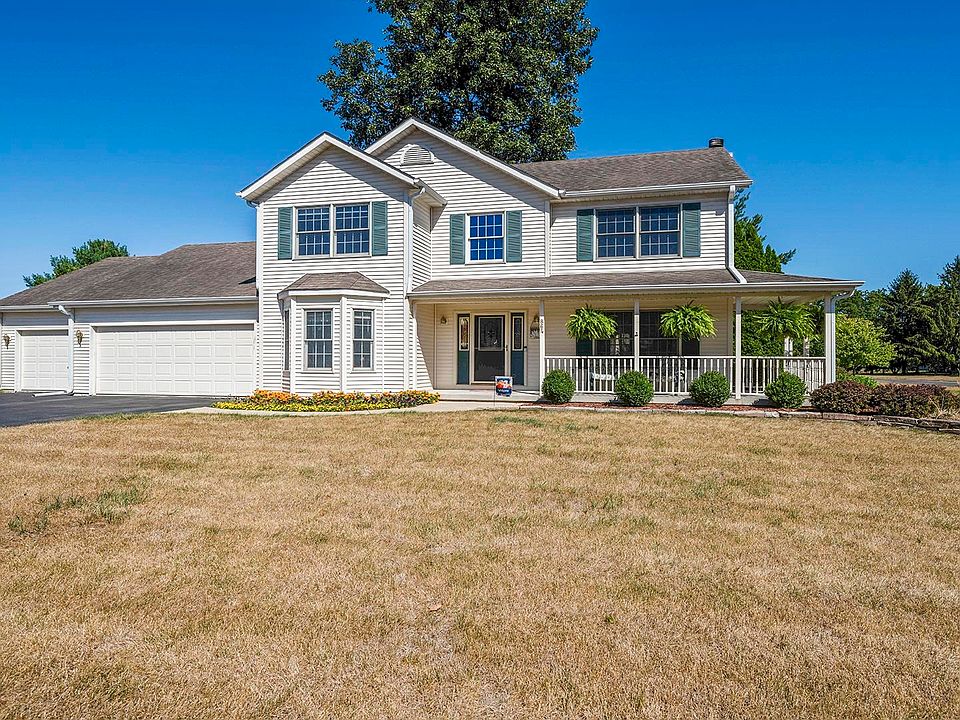 WELCOME HOME! Bursting with curb appeal, this 4 bedroom/2.5 bathroom home is sure to please. With over 2,200 square feet of finished space, the main floor is open featuring a breakfast nook off of the kitchen, wood-burning fireplace in the inviting family room, a formal living room and a formal dining room. The kitchen boasts stainless steel appliances, granite counter tops and doors to your deck. There is also a main floor laundry room off of the oversized three car, insulated garage. Upstairs you will find four bedrooms and two full bathrooms. The master suite has a large walk-in closet and oversized master bathroom with soaker tub. The lower level is ready to be finished to offer more square footage for your family! Perfectly situated on a large corner .55 acre lot near Fairgrounds park and walking paths. Call today to make this home yours!