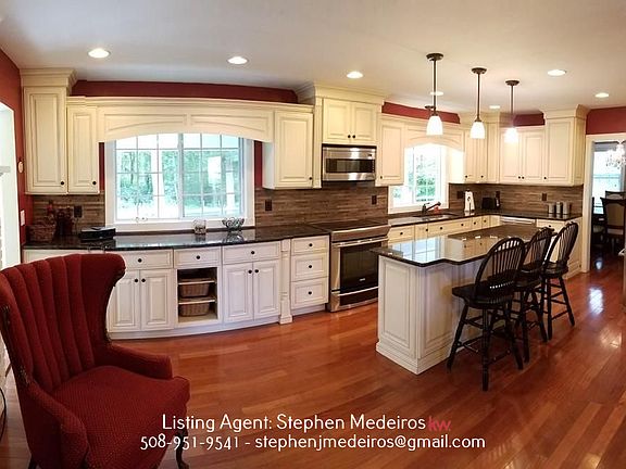 Beautiful 4 bed 2.5 bath home in North Dartmouth with over 2,200 sq ft of living space. Gorgeous Kitchen with a fireplace and sitting area for relaxing, living room and dining room all with gleaming hardwood floors. Plenty of space in the large bedrooms. Also a master suite that can be used as an in-law suite with it's own entrance. Family room in Basement with Wood Stove. Enjoy the privacy 1.15 accres offers with a fenced in back yard, concrete patio and storage shed, Ever wanted to raise chickens, there is an area fenced in and ready with chicken coups.