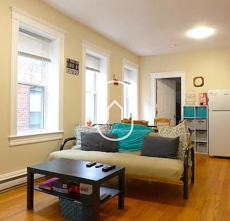 Sun drenched second floor unit Open concept w/ high ceilings Four bedrooms w/ closet space Two stylish bathrooms Hot water included Gleaming hardwood throughout Updated kitchen w/ dishwasher All new cabinetry/ countertops All new energy efficient light fixtures Plenty of extra storage space Located right on Green line Short walk to Longwood area Convenient to Fenway schools Information is reliable but not guaranteed. The apartment advertised may no longer be available for rental