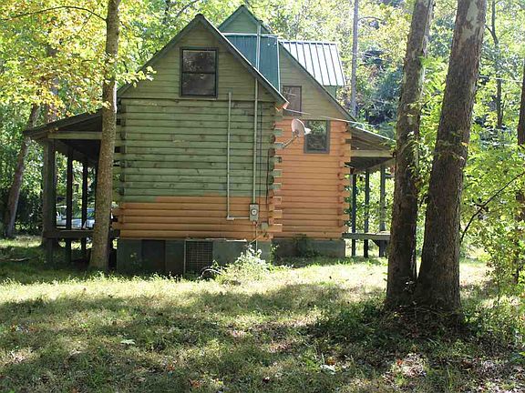 Come home and enjoy the lovely babbling sounds you can hear right from your porch! Awesome Log Built Home with the pretty Indian Creek flowing out front. Open concept plan with a stone faced wood burning fireplace, it is equip with a kitchen and large living room and huge bathroom & laundry combo on the first level. Second level is a large open loft style bedroom with a half bath room that may be able to be plumbed for a bath/shower for a full bathroom up stairs! A large concrete foundation is outback that could easily be made into a garage or workshop! Water is supplied from a spring and there is a small pond next to the bamboo stand, and plenty of space if you wanted a couple of goats or something too!