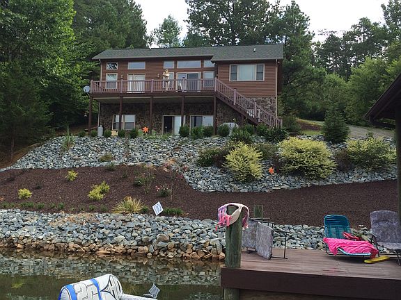 Custom vinyl and stone family home with over 100' of shore line on Smith Mountain Lake. Deep water cove with double boathouse and large floating dock. Master bedroom features vaulted ceilings,door to deck, lake views, master bath private toilet, long counter and double sinks, custom cabinets, jetted garden tub and seperate seated shower... all on main floor, main floor features valted open living room with sliding glass door on one side and sky lights above the other side with focal stone fireplace and glass block wall. Main floor host a well planned custom kitchen with island jenair grill/stove and room for eight plus to eat! Enjoy a pantry and great closets plus another Full bathroom on the main floor! Large lake side deck and roomy porch at the entrance for outdoor abundance with both views. Every bedroom And living area has huge lake views! A Beautiful spiral staircase leads to walk out lower level where skylights and upper windows shine light on staircase and wet bar in the lower family room that is also well lit and open to two sliding glass doors for fantastic lake view and air flow. One full bathroom with tub, three lake view bedrooms, a seperate laundry room doored off to a half bath that has large wash sink, water softener and water heater closet. The Lower floor opens to huge covered porch and grilling area. The lake facing wall is real field stone and concrete porch is just a quick walk to the roomy double boat house featuring electric lifts , closed bar, storage room, covered area and a massive floating dock. Deer, birds and wildlife enjoy the quite, peace and sirenity of this " new condition" functional home. Well maintained from custom quality built to paint to perfect condition in and out. Lots of closets and unique features for a couple to entertaining a big house of people! Nothing not to love, unless you want a upscale ritzy place... this home is all views and function!