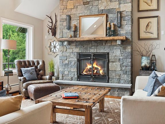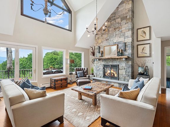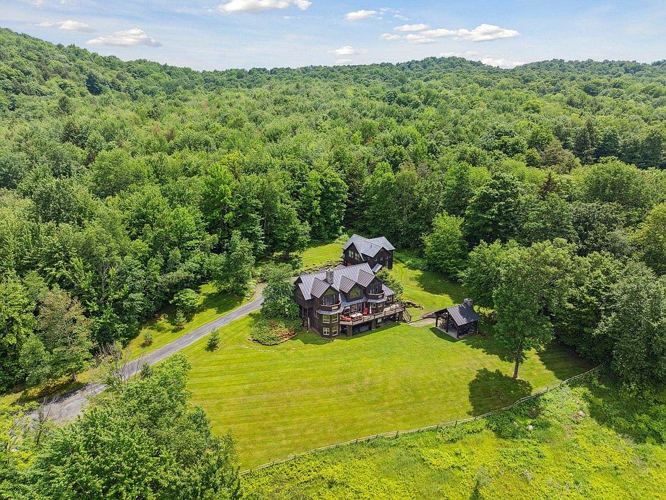 Privacy and stunning views are the hallmarks of this North Hill home. This 5 bedroom, 4 bathroom home is ideally located in Stowe Hollow providing easy access to town, trails, Stowe Mountain Resort and the highway. The private setting includes 10+ acres, views towards Nebraska Valley and Mount Mansfield, lovely landscaping anchored by a beautifully functional outdoor living pavilion with a stone fireplace. The house is spacious, bright, and positioned to capture the amazing vantage through an array of large windows. A large detached garage features a 2 bedroom guest suite with all the comforts and amenities for guests or as a rental income unit. Additional outdoor spaces include a wrap around front porch, a deck off the living room and kitchen as well as a hot tub off of the lower level. This property offers the quintessential Vermont lifestyle in a great location.