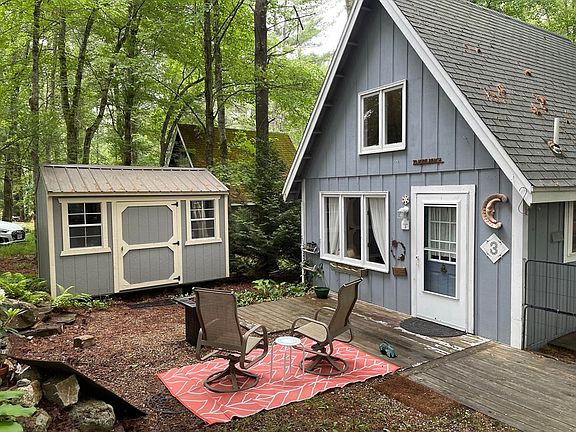 OFFER ACCEPTED. ACCEPTED BACKUP OFFERS.Discover the perfect blend of rustic charm and modern convenience in this beautifully updated cabin nestled within a sought-after campground community! The tranquil setting and the property being turnkey creates immediate summer fun. Whether you're seeking a weekend getaway, snow birding, or a 3-season retreat, this move-in-ready property has it all, including coming fully furnished! Step into wide plank wood floors with updated cabinets and a full staircase with a handrail leading to upstairs. One bed, in unit laundry and a full bath with tub makes for a convenient layout. Outside features a brand-new matching storage shed and fenced in dog area., This property is tucked away yet centrally located within the campground, offering the best of both worlds — peace and quiet with easy access to recreation and amenities - including walking distance to a pool, volleyball court, and concerts.
