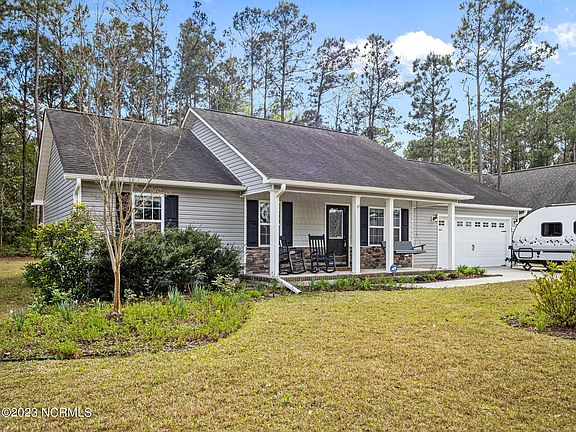 Welcome to this beautifully maintained 3-bedroom 2 bath home located just minutes away from the beaches of North Topsail. As you enter the living room you will notice the open floor plan that features easy to clean and durable luxury viny planking that runs throughout the home. The living room flows easily into the combination dining room and kitchen. The kitchen features updated kitchen cabinets, stainless steel appliances and solid surface countertops. Making your way down the hallway you will find two nicely sized spare bedrooms and a full-size bathroom for your family and friends to enjoy. The master bedroom features coffered ceilings, his and her closets and is finished off with a master bathroom that feature a walk-in tiled shower. Step out the back door and enjoy the privacy of your own tree lined backyard featuring a firepit and swing that are ready made to enjoy the Carolina weather. This is a definite move-in ready home that has so much to offer! Do not miss your opportunity to call this one home!!