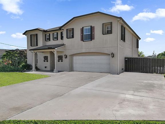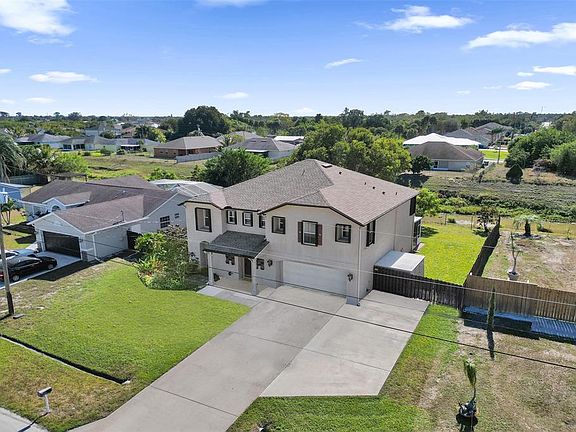 Welcome home to this spacious 3,057 sq ft two-story single-family residence designed for comfortable family living and entertainment. Featuring 4 bedrooms and 3 full baths, the thoughtful layout offers three oversized bedrooms with walk-in closets and a loft upstairs, plus a guest or in-law bedroom on the main level. Plenty of space for toys with an extra-large extended driveway for RV, boat, or golf cart parking, an XL two-car garage with storage, separate shed, and freshly finished garage floor. Peace of mind comes with a new roof (2023), fully paid solar panels, hurricane protection, wired camera system, and generator hookup. The kitchen opens to a large 10x40 screened patio, fenced yard overlooking the canal, and well-water sprinkler system—perfect for all your family entertaining.