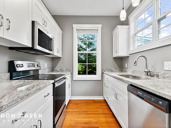 Welcome to this bright three-bedroom, two-bath home in sought-after West Asheville. This modern residence features an open concept design with gorgeous hardwood floors throughout, including recently updated bedrooms that previously had carpet. The bright kitchen showcases elegant stone countertops, soft-close cabinets, and a complete suite of appliances including an electric range, side-by-side refrigerator, dishwasher, and built-in microwave. Enjoy the home's thoughtful design with spacious bedrooms, an adorable nook perfect for reading, convenient in-unit washer and dryer, and central electric heating and air conditioning which features a split upstairs/downstairs zone for those who value the highest level of comfort. Outside, relax on the charming front porch with rocking chairs perfect for enjoying morning coffee, or gather with friends around the backyard firepit. If you need a bit of extra storage, this home includes a crawl space perfect for storing outside-items. For the gardener who wants a project this spring and summer, this property includes planting beds; a little TLC will have them producing a bountiful harvest this season. This well-maintained property offers off-street parking and is ideally situated close to West Asheville's vibrant dining and shopping scene and only 10-minutes to Downtown Asheville. Landscape services included, tenant pays all utilities. This property is pet-friendly, up to two pets, with a $250 refundable deposit per pet. Sorry, this home does not accept co-signers. All Iron Creek Properties residents are automatically enrolled in the Resident Benefits Package (RBP) via Second Nature for $11.95/month, which provides liability insurance. This fee is waived if tenants provide evidence of private insurance to Second Nature. Additional upgrades to the RBP are also offered for an added monthly cost, including credit building to help boost the resident's credit score with timely rent payments, up to $1M Identity Theft Protection, a move-in concierge service making utility connection and home service setup a breeze during your move-in, a best-in-class resident rewards program, and on-demand pest control. Please ask our leasing staff for more details upon application!