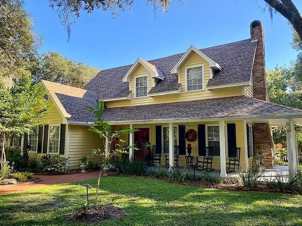 1 ACRE - Chula Vista! NO HOA ! Spacious 4 BD / 3 BT, HEATED Pool. Large Kitchen with Granite countertops & Custom Wood cabinets, black Stainless appliances. DOWNSTAIRS, Master Suite. There is an additional bedroom downstairs and a "pool bath" . Real Wood floors and Tile floors. New Roof 2020. Soaring ceilings, Brick Fireplace, arched windows, French doors, crown moldings, Wrap-around front porch, Screen-enclosed lanai . New central air system 2020. Formal dining room/ breakfast room. Zoned for Horses. Great Seminole Schools!