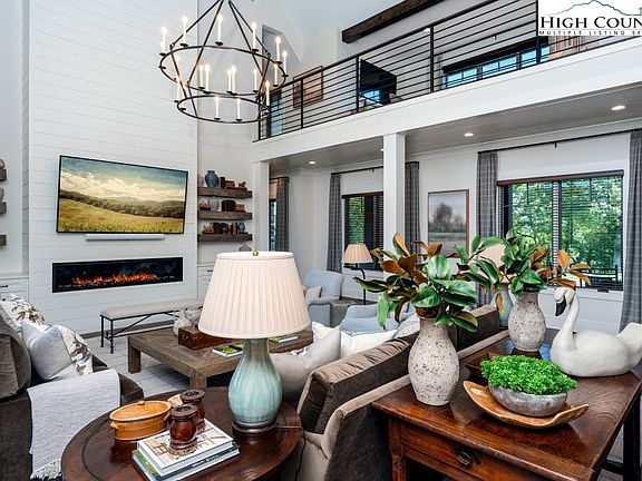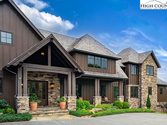 Mountain farmhouse retreat in Blowing Rock’s Firethorn gated community. Welcome to a traditional and classic mountain escape or permanent home, this welcoming and stunning 4,968-square-foot residence with a 925-square-foot apartment, seamlessly blends traditional mountain design with open, bright, spacious interiors set in the natural beauty of the Blue Ridge Mountains. In the exclusive gated community of Firethorn, this private estate borders the scenic Blue Ridge Parkway and its protected forest. It is only minutes from the charming village of Blowing Rock, offering a balance of seclusion and accessibility to dining, shopping and cultural attractions. From the moment you arrive, a picturesque drive sets the tone for this peaceful retreat. The front porch is ideal for rocking chairs, inviting you to slow down and embrace the relaxed mountain lifestyle. Go inside to an impressive great room with soaring ceilings, expansive windows that bathe the space in natural light and breathtaking views that bring the outdoors inside. Professionally designed interiors feature custom lighting, window treatment, and curated flooring selections throughout the home. The great room and kitchen features shiplap walls and ceilings anchored by a cozy gas fireplace. The heart of the main level is the open chef’s kitchen, outfitted with a dramatic center island, top-of-the-line appliances, granite countertops, a butler’s pantry with a wet bar and a climate-controlled wine storage area, ideal for entertaining or enjoying quiet evenings. The main-level primary suite is a tranquil haven, featuring a spa-inspired bath, exquisite wallpaper, draperies and oversized walk-in closets. Just off the great room, an expansive covered outdoor living area includes a stone wood-burning fireplace and an outdoor kitchen, ideal for everything from intimate gatherings to festive celebrations. Upstairs, you’ll find three spacious en suites impeccably designed for relaxation. The loft sitting area offers guests convenience, comfort, and privacy. For additional flexibility, a 925-square-foot one-bedroom apartment above the garage—accessible via private and interior entry—provides a fully equipped kitchen, spacious living area, full bath and great views. Note: This apartment is not included in the home’s total heated living space as it is a secondary living quarter. With over 1,450 square feet of covered decking, you can enjoy year-round views of Grandfather Mountain. Also, the relatively flat, manicured one-acre lot provides generous green space and multiple outdoor gathering areas perfect for activities. A three-car heated garage, security system, Sonos A/V system, Lutron lighting control system, generator and elevated finishes throughout ensure luxury, comfort and peace of mind. Whether you’re hosting a sunset dinner on the terrace, sipping wine by the outdoor fireplace or exploring the nearby hiking and biking trails, this home is more than a residence, it’s a lifestyle. The Firethorn community offers peace and serenity, making it ideal for enjoying morning and evening strolls. Additional notes: Four-bedroom septic permit (five sleeping quarters, including the apartment). Professional measurements differ from tax records, but the total square footage is approximately 6,970 and this includes the main house, apartment, garage and porches. Furnishings available separately.