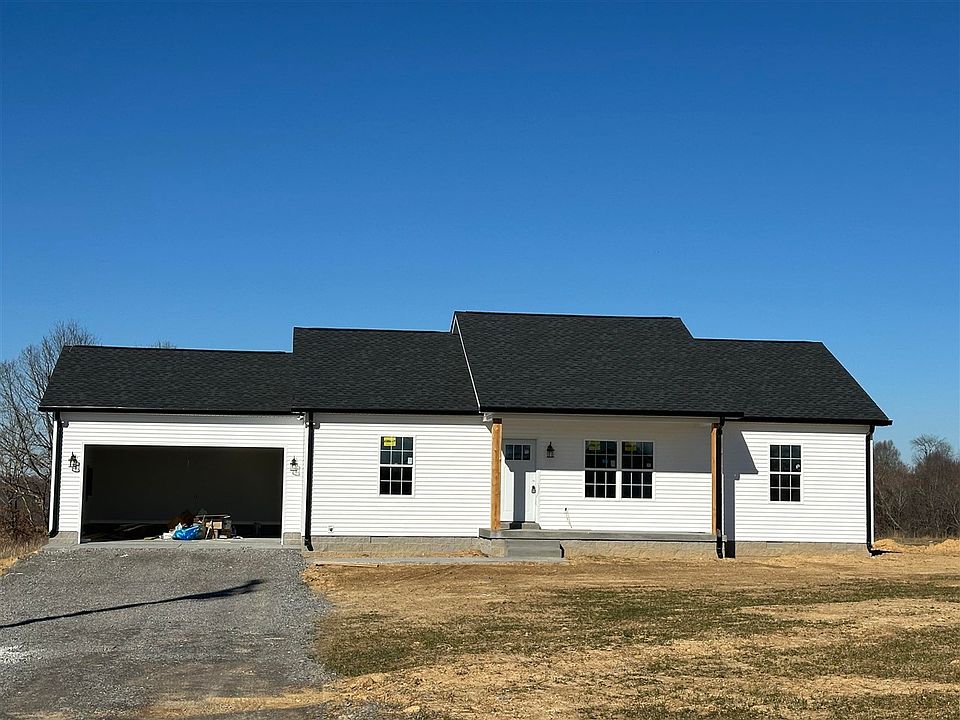 New construction home! 1357 square feet with attached 2-car garage. Spacious front porch with solid cedar posts and shutters. Wooden deck to sit and enjoy the spectacular country view. Large, open living space. Split-bedroom floor plan. Custom cabinetry throughout with kitchen island. Granite countertops throughout. Walk-in master closet. Double vanity in master bath with tile shower. Tile utility and bathroom floors. Luxury vinyl plank floors throughout. No carpet!