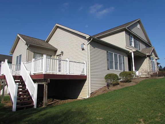 THIS LUXURIOUS SEMI DETACHED IN WINDSOR CROSSING SHOWS PRIDE IN OWNERSHIP AND IS PRICED TO SELL. TWO STORY VAULTED CEILING, STONE GAS FIREPLACE, 1ST FLOOR MASTER SUITE, HARDWOOD FLRS, OPEN FLOOR PLAN, 1ST FLOOR LAUNDRY, TREX DECK, BASEMENT EASILY FINISHED WITH WALK OUT, FORMAL DINING ROOM, 3 GENEROUS BEDROOMS ON THE 2ND FLOOR WITH FULL BATH AND ADDITIONAL SPACE, STAINLESS STEEL APPLIANCES, BRAND NEW SMOKE DETECTORS-TOO MANY OPTIONS-A MUST SEE!