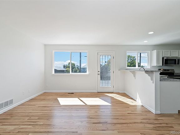 Don't miss this one! Updated/Remodeled Ranch Home in Thornton. Everything is crisp and new. New roof, New wood flooring, new carpet, new paint. Sparkling bright kitchen with new granite counters, new stainless steel appliances. Updated bathrooms include granite counters and new fixtures. The main level features a large primary bedroom, private primary bathroom, 2 additional bedrooms and another full bath. Bright and open family room, eat-in kitchen. The basement is finished and offers a 4th bedroom, 3/4 bath with shower, spacious bonus room/den, extra storage and more. You will love the spacious backyard with an custom deck and a large utility building. Extra parking/storage on the side of the house, perfect to park your boat or camper. Convenient Thornton location, minutes from I-25.