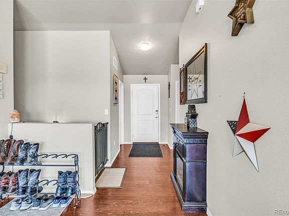Wide open custom floorplan with 10' vaulted ceilings, real hardwood floors, and beautiful mountain views from large picture windows. Kitchen features double pantries, convection oven with double doors, built-in dining bench and lots of counter and cabinet space. Oversized primary bedroom with walk-through bathroom and closet, large walk-in tile shower, split double vanity and private water closet. Main level walk-through laundry/mud room conveniently between bedrooms with garage access. All-LED lighting. Tankless water heater and Panasonic air exchanger/filtration system, central heating and A/C. Attached insulated 2-car garage is also heated and cooled. Basement has bathroom rough-ins, egress windows with dedicated room vents and lights, ready for finishing. Property borders an equestrian trail and quiet horse properties on the East side. Across the street in front is an open field for unobstructed Pikes Peak views! New landscaping and a fenced in yard that connects the house to the custom shop. Fully insulated shop boasts 36'x48' (1728ft ) inside, great natural light, plenty of outlets and brilliant LED lighting (Any time is daytime inside!) 100A service with room for 220V in the panel. Two 36" walk doors, two windowed 16' wide bay doors on openers. Additional 36'x16' covered shop patio features stamped and dyed concrete, ready for entertaining! Gutters installed. 8" thick reinforced hydraulic lift footers poured with concrete floor in shop. $2500 flooring allowance!