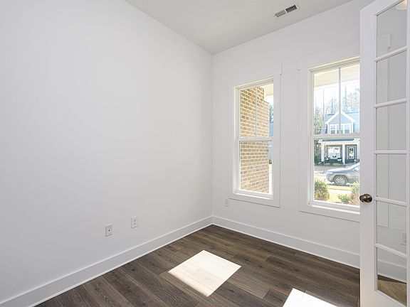 Move in ready! Gorgeous Purpose floorplan, in a paired villa! Elegant semi-detached home w/10' ceilings, f/p, gourmet kitch w/gas cooktop, separate study w/french doors, spa shower in primary bath, beautiful cabs and counters in kitchen! Pass-thru from oversized primary closet to big laundry room! Just around the corner from beautiful Joyner Park, 5 minutes to shopping and dining, and 10 mins to downtown Wake Forest!