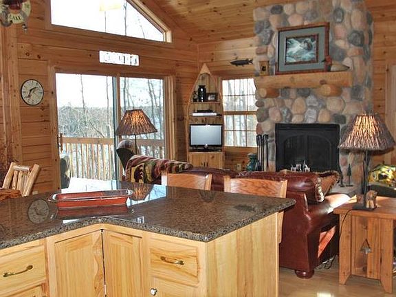 SQUIRREL LAKE LOG CABIN - This newer D-Log construction was built with attention to detail in the true North Woods style. Open concept Living, Dining, Kitchen with Cathedral ceiling, wall of windows bringing the outdoors in and punctuated with a Raised Hearth Fieldstone gas log Fireplace. First floor Master Bedroom, Guest Bedroom & Laundry! Escape to the finished Lower Level Family Room that opens to a patio lakeside & warmed by a gas stove plus a Third Bedroom, Den & Full Bath. Enjoy spectacular lakeside views on the spacious deck (22x12) or the (12x12) screen porch. New shingles in 2015 on Cabin/Garage due to a hail storm, Kitchen appliances replaced & Granite Counter tops installed 2014. Gently used and still has the "brand new" smell. 2 Car detached garage! Colorado Stone Fire pit. Floe 40 ft. aluminum pier w/(8x20) L platform included (5' depth - great for skiing from or jumping off the dock)! Move-in ready and located on one of the most sought after lakes in Minocqua.