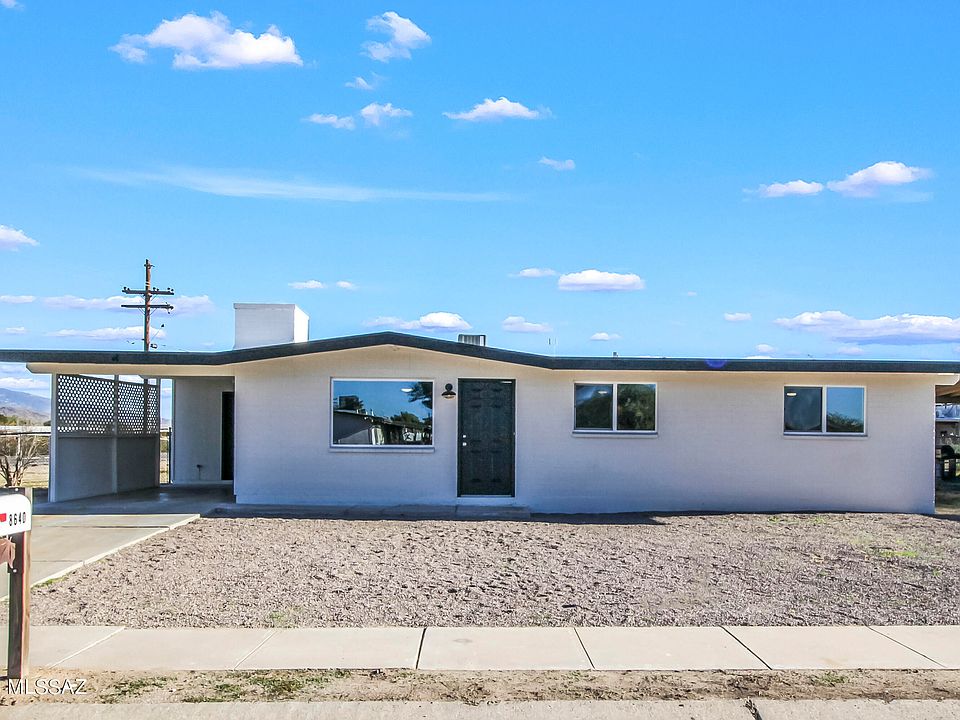GREAT CORNER LOT with VIEWS! SAVE with low cost SOLAR lease through Tesla (Monthly cost is approximately $60 now and maxes out at $88/mo in 2035). This beautifully renovated 4 bedroom, 2 bathroom home on Tucson's Eastside boasts an open floor plan and plenty of natural light. The home features solar panels, updated finishes throughout, including new cabinets, hardware, and stainless-steel appliances in the kitchen, as well as updated bathrooms with new vanities, faucets, light fixtures, mirrors, and a tub. Other updates include new windows, wood-like vinyl plank flooring, new baseboards and carpet, and ceiling fans in every room. The backyard is perfect for building an ADU or pool and boats stunning mountain views. Come. See. Stay!