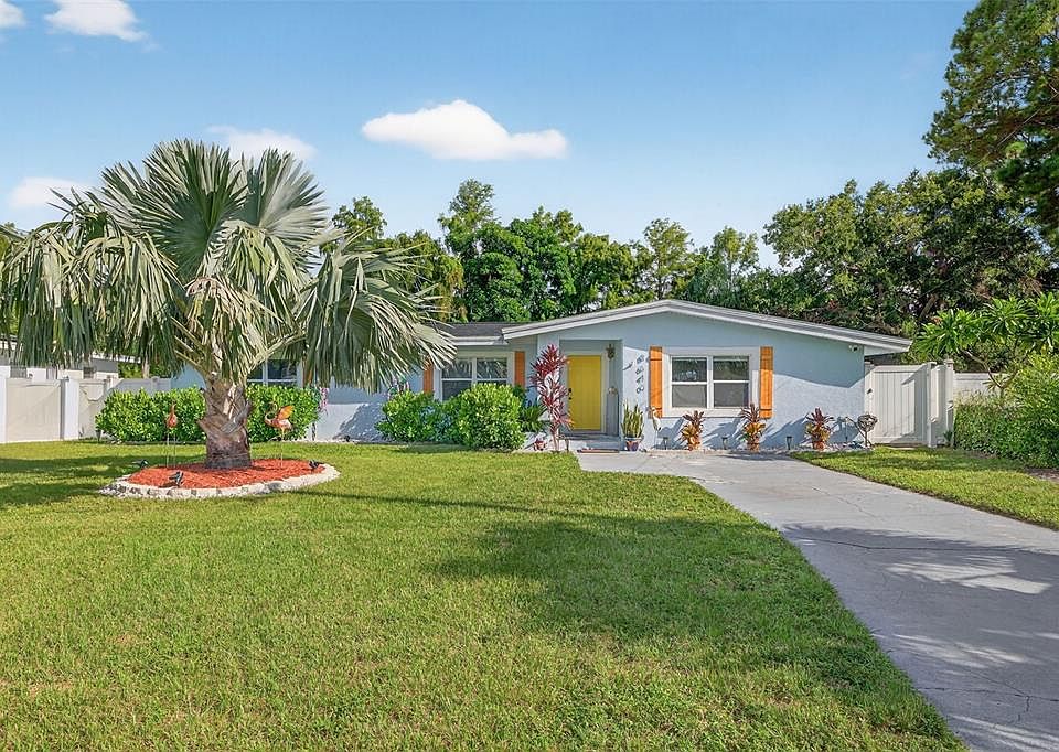 Under contract-accepting backup offers. HIGH AND DRY SEMINOLE BLOCK HOME in NON FLOOD ZONE! Beautifully designed 4 bedroom, 3 full bathroom home in the desirable Bardmoor neighborhood! This home was made for entertaining - from the moment you walk in you're greeted with lovely touches, from the real wood shutters and tropical landscaping to the updated floors and finishes. Rejoice in no rear neighbors--just a tranquil pond for company. Open and inviting the layout is exactly what you've been looking for--with a split floor plan, DOUBLE master suites, large updated kitchen, MASSIVE screened lanai and fenced yard -- this home is a DREAM. Did we mention peace of mind with a New Roof in 2021?! Rule your roost--NO Flood Zone & NO HOA. Just bring your boat or RV and enjoy and enjoy your best Florida life. As you drive up to this home, you will notice the charming curb appeal. Tastefully updated kitchen with new cabinets, counter tops, stainless steel appliances, subway tile backsplash. The kitchen leads to a light and bright dining room. Use it as a formal dining space, play room, or office! Choose your own adventure with not one but TWO spacious primary suites with ensuite bathrooms with modern updates and finishes. The additional well appointed bedrooms give everyone room to spread out. The world is your oyster in this oversized back yard -- plenty of room for a pool, garden, putting green, storage, workshop or to make your own tropical oasis! On the other side of the property line is a tranquil pond as your rear neighbor. Close to top Seminole schools, Seminole Golf & Country Club, Lake Seminole Park, pristine award winning beaches, Seminole City Center restaurants/shopping, Bay Pines, and more! Schedule your tour today!