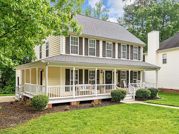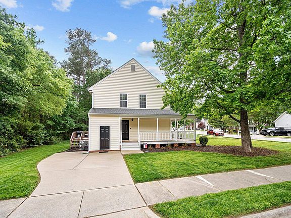 Imagine sitting on your wrap around front porch sipping some lemonade this summer. Come grab this adorable home in the heart of North Raleigh. Convenient to 540, shopping, restaurants, and Durant Nature Trail. This 3 BR/ 2.5 BA home has updated light fixtures, a gas fireplace in living room, formal dining room, and a back deck perfect for grilling. Upstairs are 2 guest bedrooms, a guest bathroom, and an awesome Primary Suite with 2 closets. Refrigerator, Washer, Dryer stay with house.